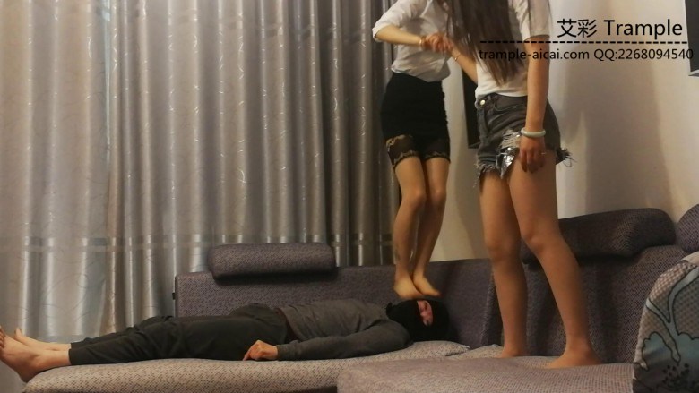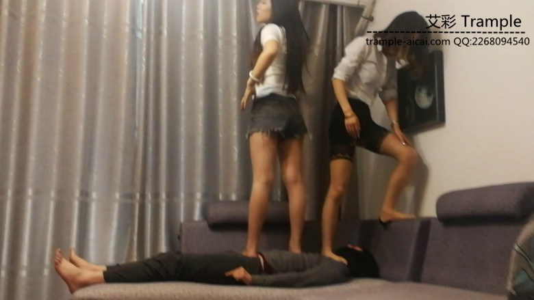 【欧洲脚下奴系列】美女姐妹花帆布鞋暴力踩踏调教 O-180329-4