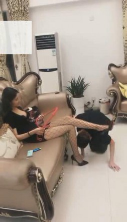 给IX女主舔黑丝!贱狗狗头做女主的沙发垫!