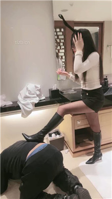 吊带长裙性感长靴全体重踩肚子舔鞋底踩喂面包