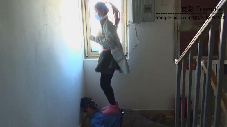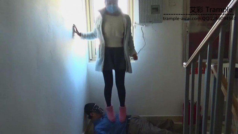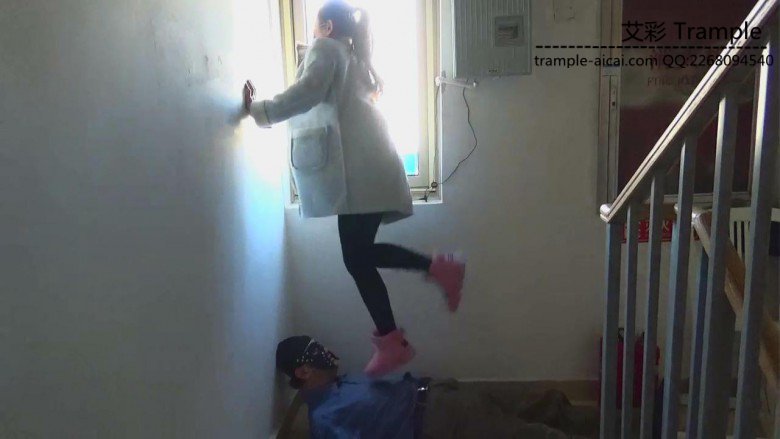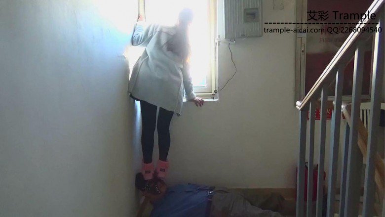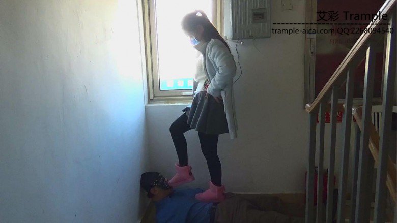 【商务女主】白领小美女穿粉色雪地靴在室外践踏和玩弄