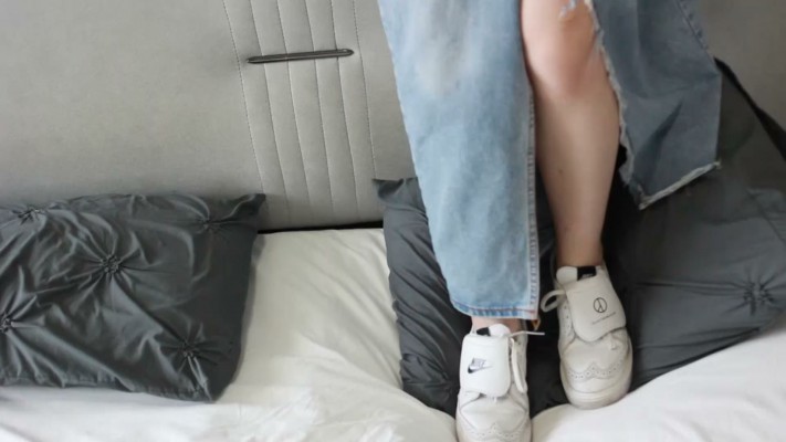 【黑丝诱惑】素人篇:大二学生晓俞小白鞋踩白床舔原味脏鞋底 YC-240906-6