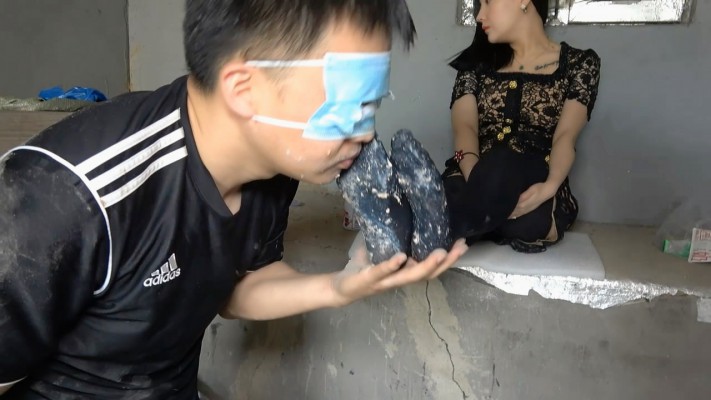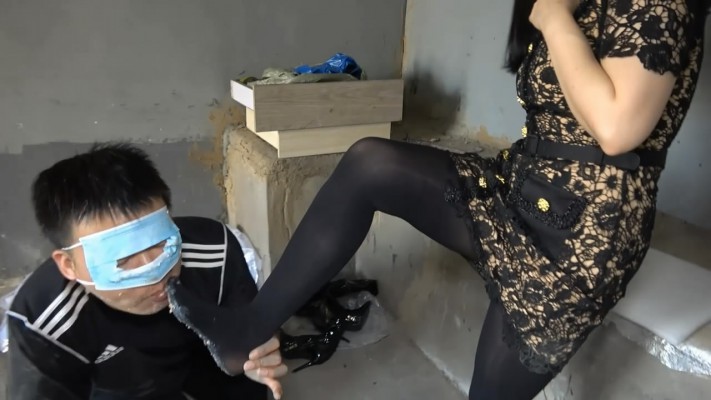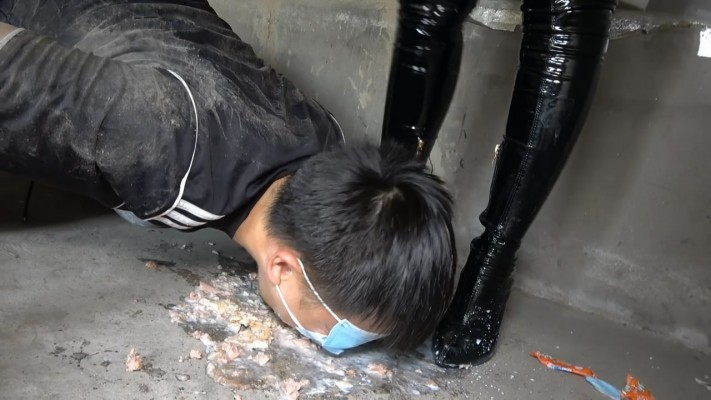 脏乱的废弃屋内皮靴和厚黑丝踩踏食物,强迫贱狗舔食,贱狗满脸脏食物,十分羞辱