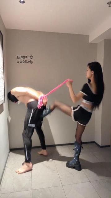 美女惩罚调教贱畜抽耳光虐乳暴力膝顶踢裆踩踏闻舔原味长靴黑丝美脚