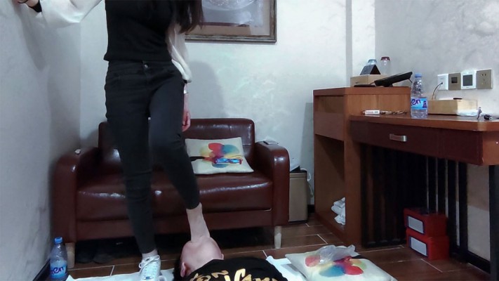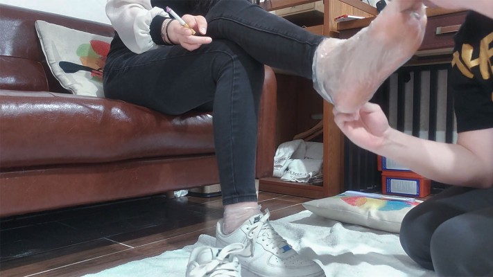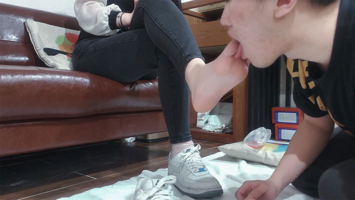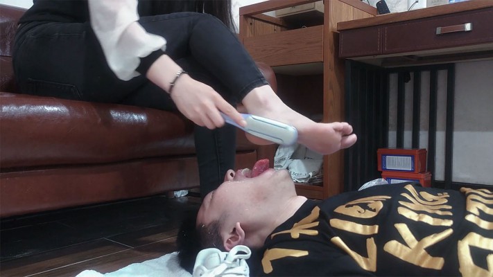 内容:冷凝女王穿着塑料袋脚套运动捂脚汗,让脚奴把脚上的汗水舔干净以后开始用磨脚器清理脚底的死皮。小m在女王脚下张大嘴接着磨下来的脚皮,脚皮屑就像雪花一样飞到小m的嘴里和脸上,就像给小m的脸抹上了一层粉,脚奴的嘴就是冷凝女王的脚皮垃圾桶。