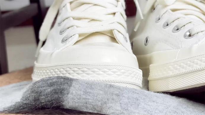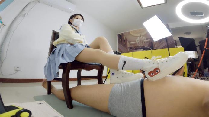 凌音学姐穿着蓝色的JK装和白色长袜和白色的帆布鞋 她坐在椅子上 穿着帆布鞋把偷窥自己的猥琐男同学踩在脚下 嘲讽到就是你~ 我早就发现你了每次都盯着我的脚 我的鞋看个不停~! 想不想被学姐踩在脚下玩弄你这个贱东西 啊? 看看你这个贱样子~ 被我踩在脚下什么感觉呀 嗯?什么感觉?是不是每天都幻想被我玩弄啊 嗯?你可要小点声 不要被外面的人听到呢~ 被你们全班的人看到 可是很丢脸的 嗯~?哼~ 这样踩你~ 感觉怎么样啊?哼哼哼哼 是不是特别享受 被我踩在脚下玩弄啊 嗯?改天啊 我想穿一双高跟鞋来玩弄你怎么样啊 ~ 哈哈哈 看你期待的贱样子~! 哈哈~ 贱东西!嗯?