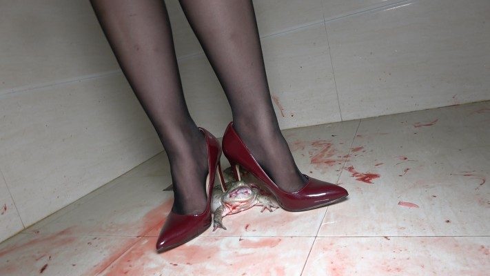 彼岸花三双高跟鞋鞋分别踩暴三只牛蛙,画面暴力残忍,鞋跟扎透牛蛙的身体,牛蛙还在挣扎,慢慢五脏六腑都出来了,嘴里不停羞辱下贱的牛蛙,卑微的牛蛙就这样被处决。