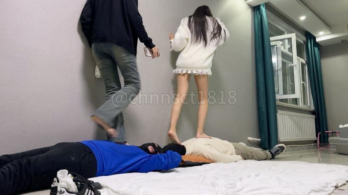 【台湾踩踏俱乐部】Vita情侣主超细金属高跟暴力踩踏穿刺m亲密拥吻